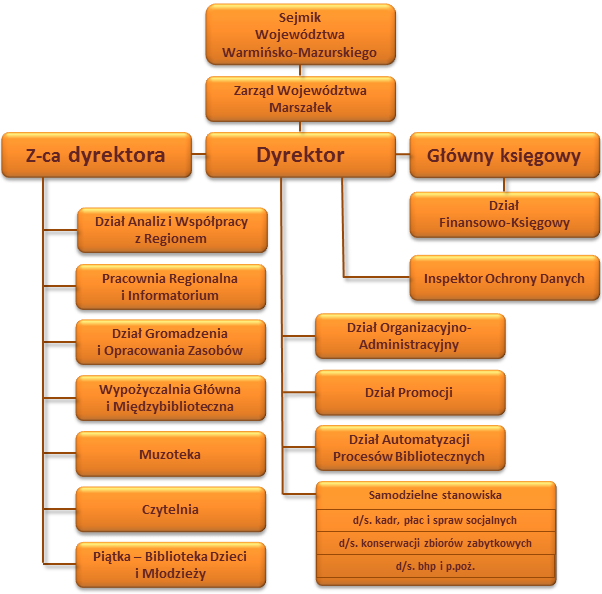 Wersja obowiązująca z dnia 12-01-2021 09:43:08 Drukuj Struktura organizacyjna Schemat organizacyjny Wojewódzkiej Biblioteki Publicznej w Olsztynie